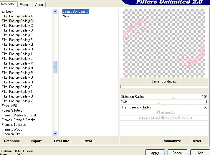 Effets>Modules Externes>Filters Unlimited 2.0 - Filter Factory Gallery B - James Bondage, par défaut.