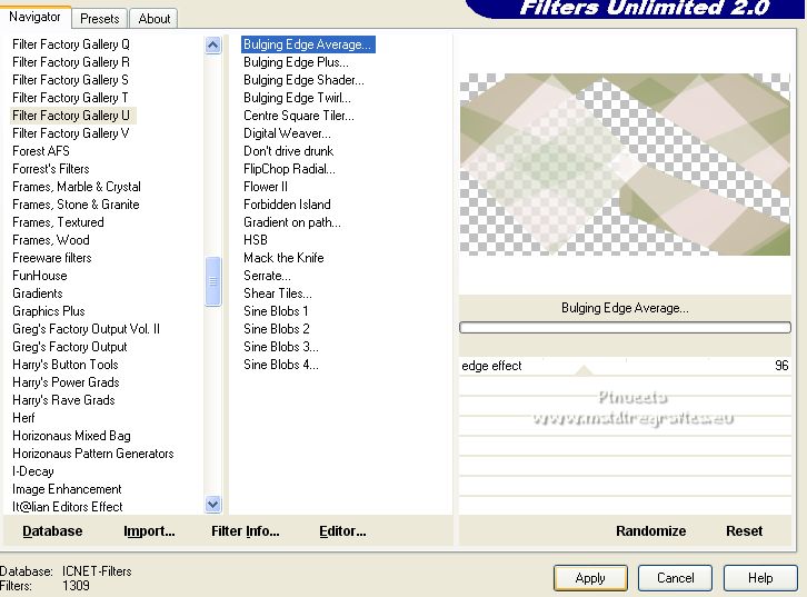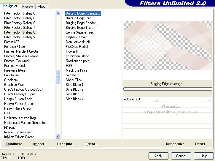 5. Effets>Modules Externes>Filters Unlimited 2.0 - Filter Factory Gallery U - Bulging Edge Average.