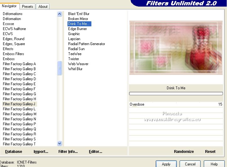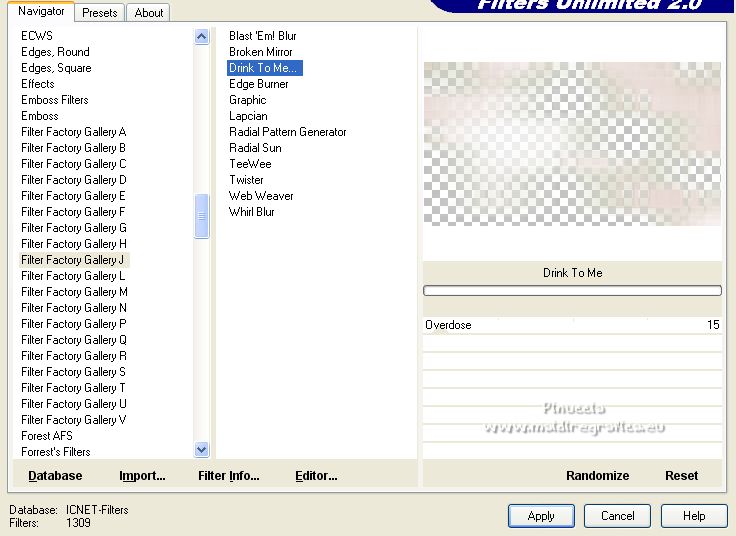 Effets>Modules Externes>Filters Unlimited 2.0 - Filter Factory Gallery J - Drink To Me, par défaut.