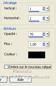Effets>Effets 3D>Ombre portée, paramètres et couleur à choix (j'ai choisi la couleur 5)