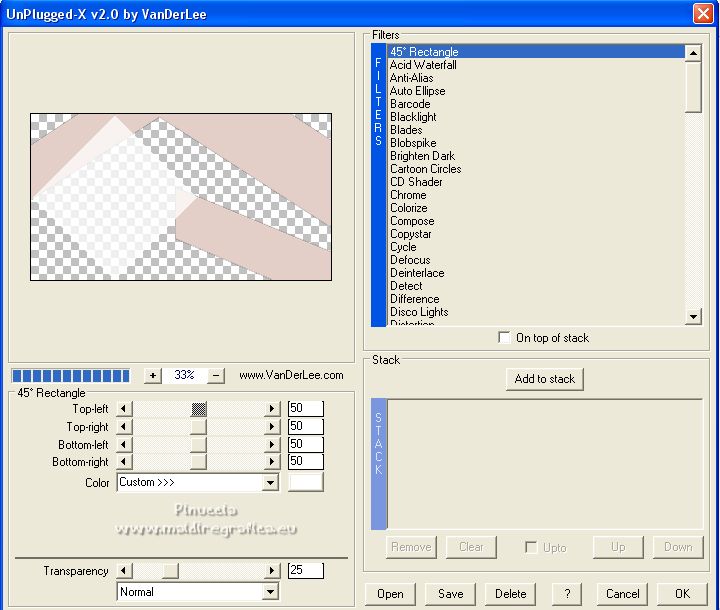 Effets>Modules Externes>Unplugged Shapes - 45 Degree Rectangle, par défaut.