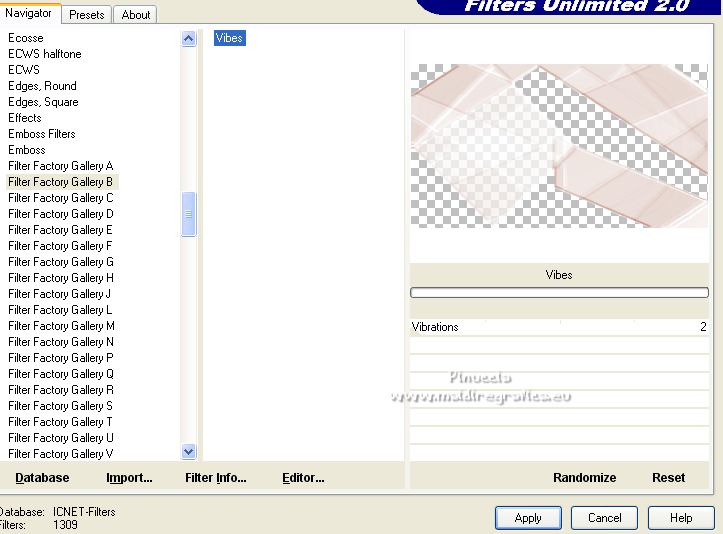 Effets>Modules Externes>Filters Unlimited 2.0 - Filter Factory Gallery B - Vibes, par défaut.