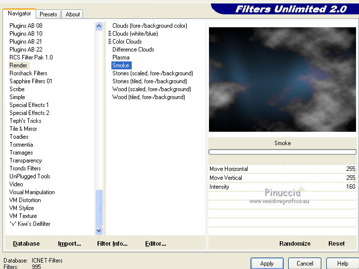 5. Effetti>Plugins>Filters Unlimited 2.0 - Render - Smoke.