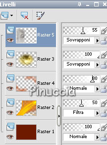 4. Nella paletta dei livelli cambia la modalità di miscelatura di questo livello in Filtra,