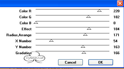 I settaggi colore R, colore G, colore B sono dati qui per i colori che ho scelto io.