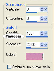 Effetti>Effeti 3D>Sfalsa ombra, con i seguenti settaggi, colore di sfondo.