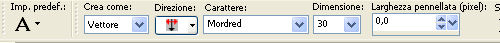 Attiva lo strumento Testo , font Mordred, dimensione 30, pennellata 0,