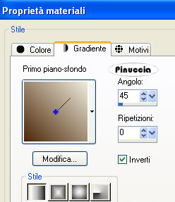 Passa il colore di primo piano a Gradiente di primo piano/sfondo, con i seguenti settaggi: