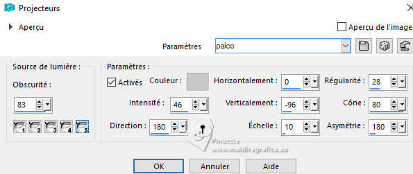 Effets>Effets de réflexion>Miroir rotatif, par défaut.