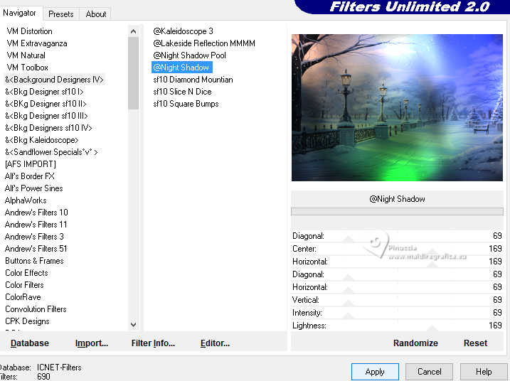 26. Effects>Plugins>Filters Unlimited 2.0 - &<Background Designer IV> @Night Shadow, default settings.