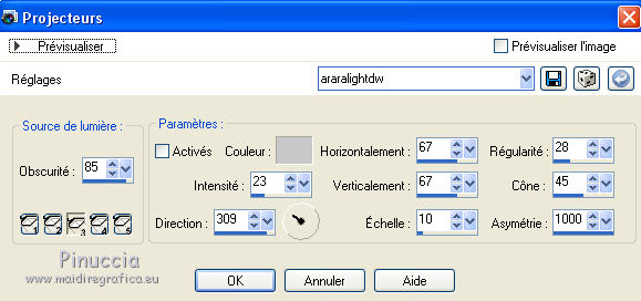 Effets>Effets d'éclairage>Projecteurs