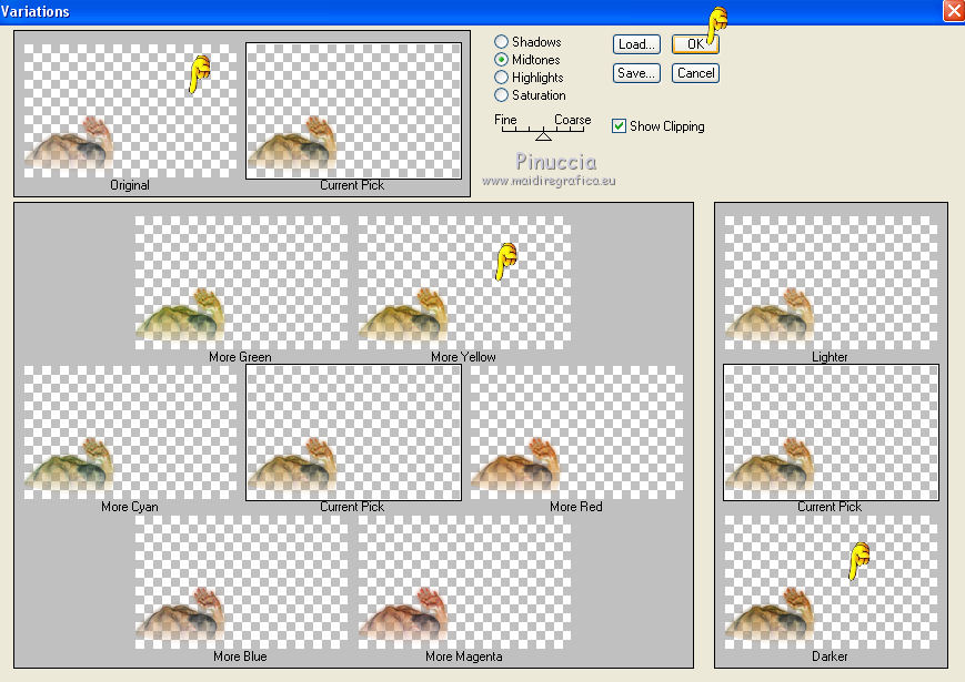 un clic sur Original pour annuler précédents réglages mémorisés par le filtre,