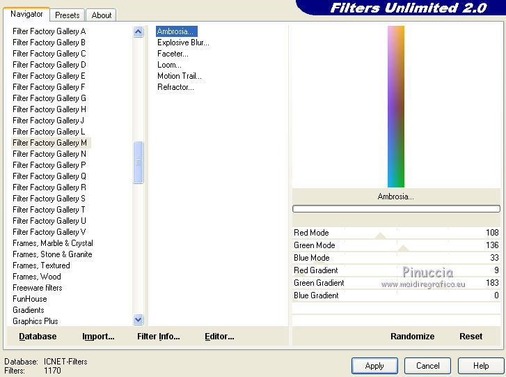 8. Effets>Modules Externes>Filter Factory Gallery M - Ambrosia, par défaut.