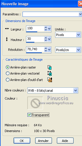 1. Ouvrir une nouvelle image trasparente 100 x 30 pixels.