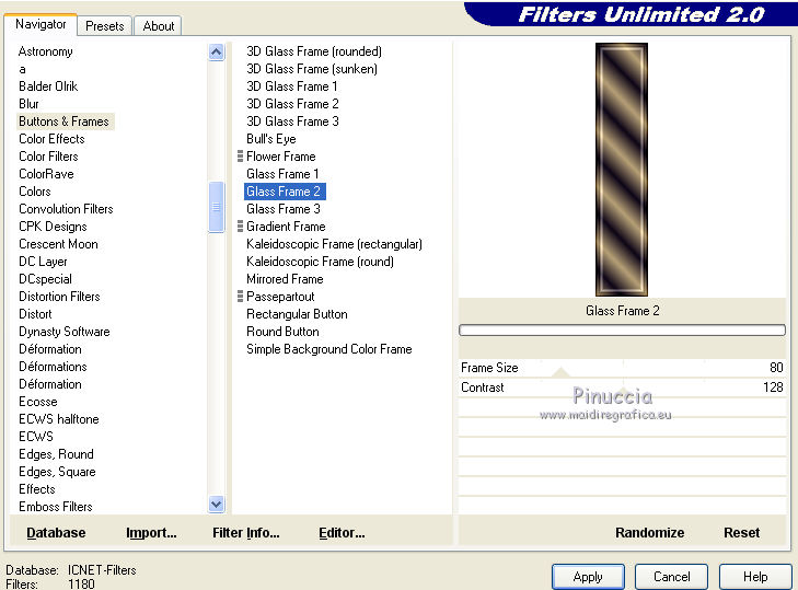 3. Effets>Modules Externes>Filters Unlimited 2.0 - Buttons & Frames - Glass Frame 2.