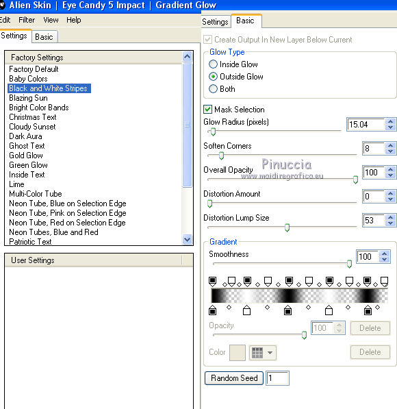 11. Effets>Modules Externes>Alien Skin Eye Candy 5 Impact - Gradient Glow.