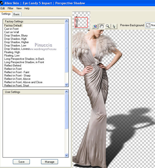 Effets>Modules Externes>Alien Skin Eye Candy 5 Impact - Perspective Shadow, par défaut.