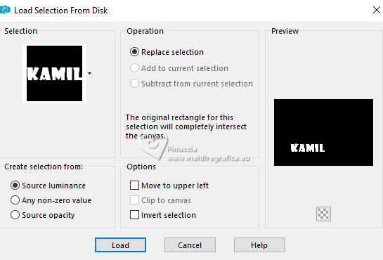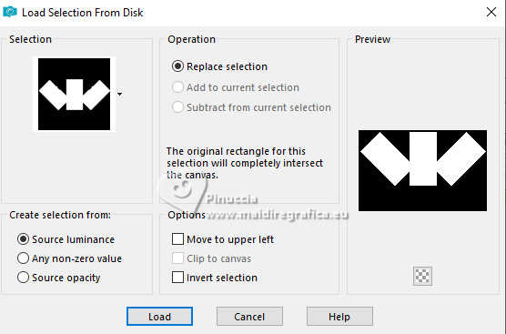25. Selections>Load/Save Selection>Load Selection from Disk.