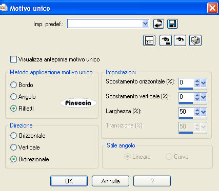 Effetti>Effetti di immagine>Motivo unico, con i seguenti settaggi: