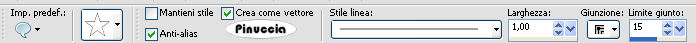scegli una stella, larghezza 1, crea come vettore e antialias selezionato.