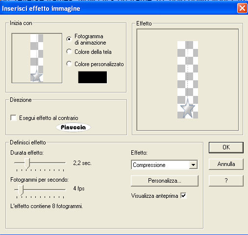 Effetti>Inserisci effetto immagine - Compressione, con i seguenti settaggi e clicca ok: