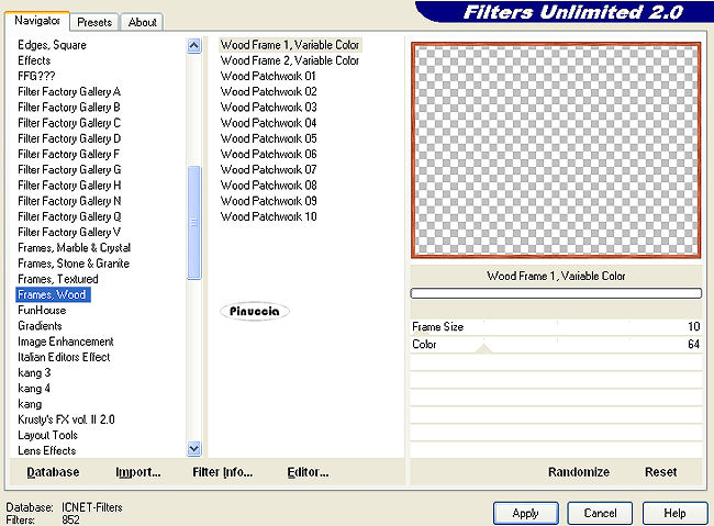 Effetti>Plugins>Filters Unlimited 2.0 - Frames Wood - Wood Frame 1.