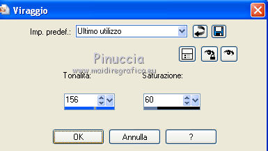 Regola>Tonalità e saturazione>Viraggio, e trascrivi i valori annotati corrispondenti al tuo colore di primo piano.