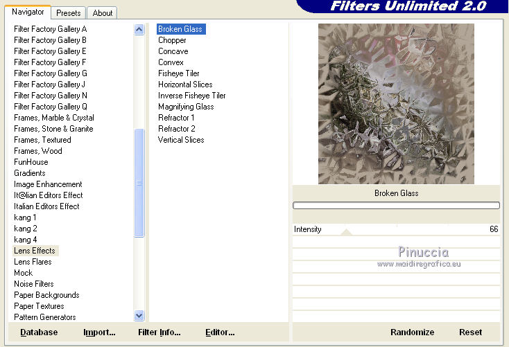 16. Effetti>Plugins>Filters Unlimited 2.0 - Lens effects - Broken glass.