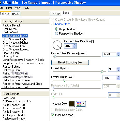 7. Effetti>Plugins>Alien Skin Eye Candy 5 Impact - Perspective Shadow.