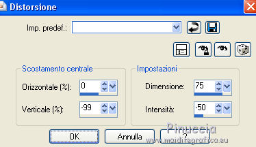 Effetti>Effetti di distorsione>Distorsione, con i seguenti settaggi.