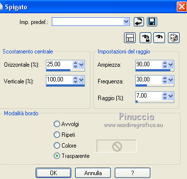 Effetti>Effetti di distorsione>Spigato, con i seguenti settaggi.