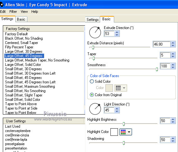 Effetti>Plugins>Alien Skin Eye Candy 5 Impact – Extrude.