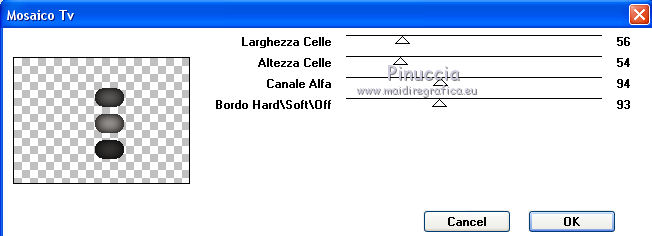 Effetti>Plugins>It@ian Editors Effect – Mosaico Tv, con i settaggi standard.
