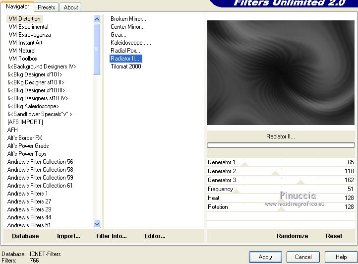 Effetti>Plugins>Filters Unlimited 2.0 - – VM Distortion – Radiator II, con i settaggi standard.