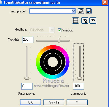 Regola>Tonalità e saturazione>Tonalità/Saturazione/Luminosità.
