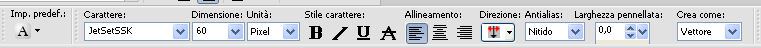 Seleziona il font JetSetSSK Regular, e regola la dimensione tra 40 e 60 (per il mio esempio 60).