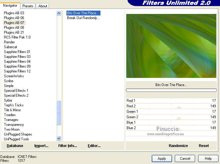 Effetti>Plugins>Filters Unlimited 2.0 - Plugins AB 07 - Bits Over The Place, con i settaggi standard.