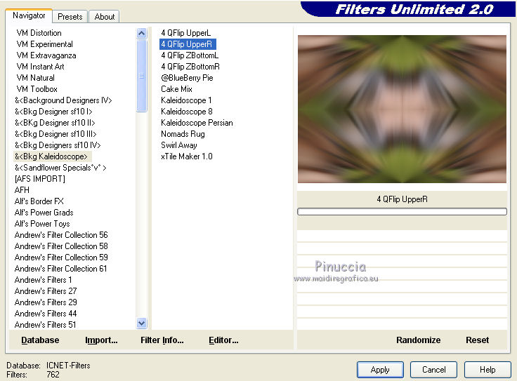 Effetti>Plugins>Filters Unlimited 2.0 - &<Bkg Kaleidoscope> - 4QFlip UpperR.