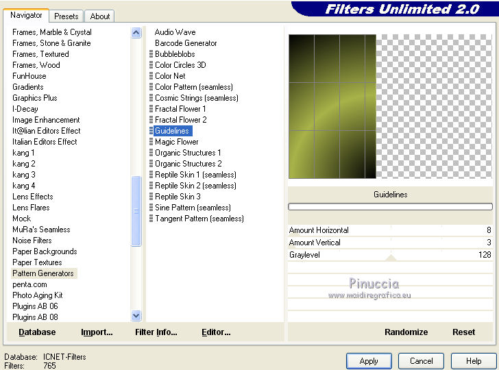 Effetti>Plugins>Filters Unlimited 2.0 – Pattern Generators - Guidelines.
