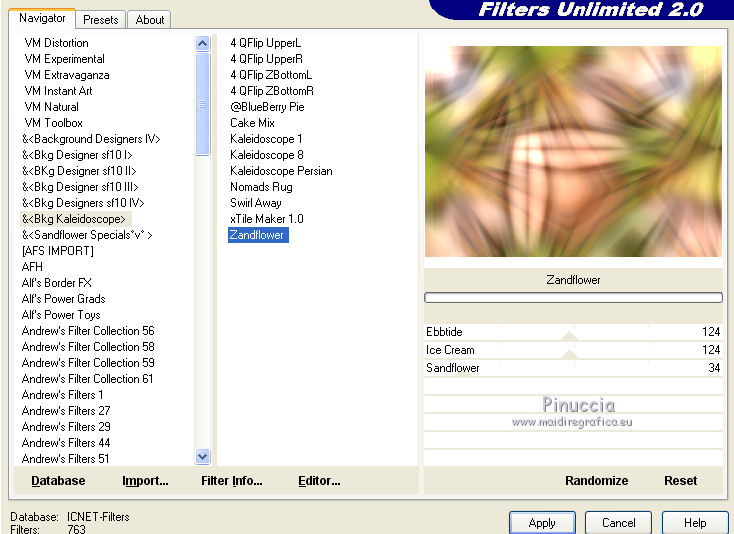 Effetti>Plugins>Filters Unlimited 2.0 - &<Bkg Kaleidoscope> - Zandflower.