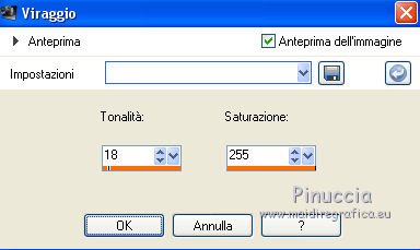 Regola>Tonalità e saturazione>Viraggio, con i settaggi precedenti.