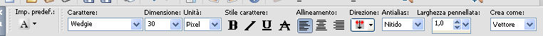 16. Attiva lo strumento Testo , font Wedgie, dimensione 30, pennellata 1.