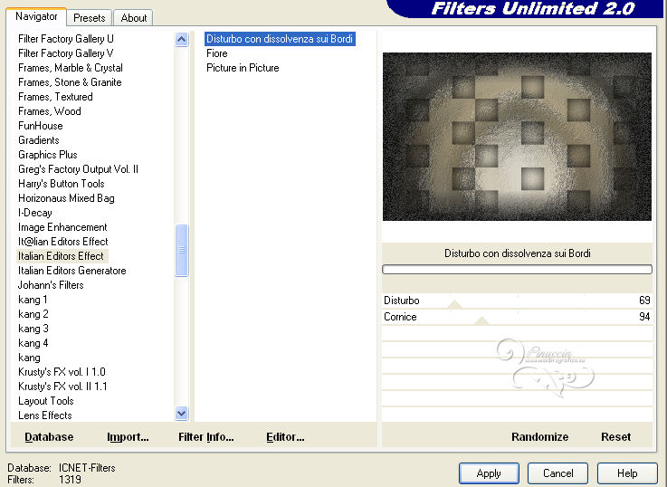 Anche i filtri Toadies, Tramages, Italian Editors e Graphics Plus si possono usare da soli o importati in Unlimited