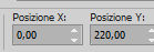 Posizione X: 0,00 - Posizione Y: 220,00.
