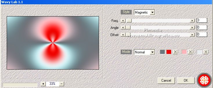 Effects>Plugins>Mehdi - Wavy Lab 1.1., same settings.