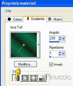 Imposta il colore di primo piano su Gradiente e seleziona il gradiente Mcq-Turf, con i seguenti settaggi: