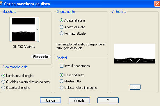 Cerca e carica la maschera SN432_Verinha con i seguenti settaggi:
