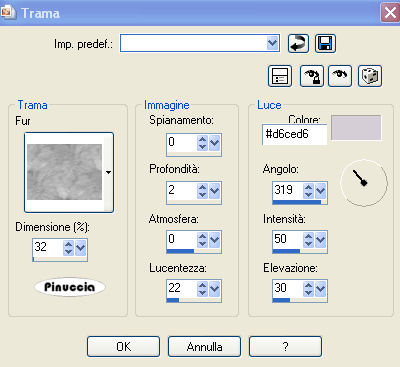 4. Effetti>Effetti di trama - Trama, seleziona la trama Fur, con i seguenti settaggi: