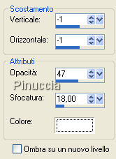 Effetti>Effetti 3D>Sfalsa ombra, con i seguenti settaggi, colore bianco.