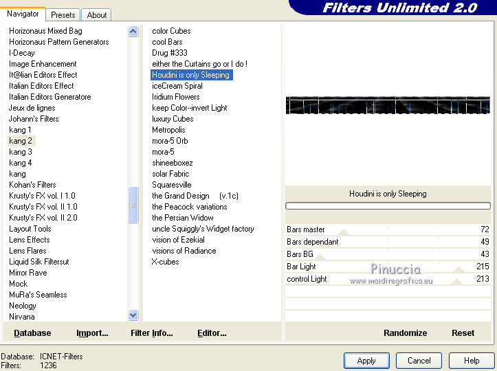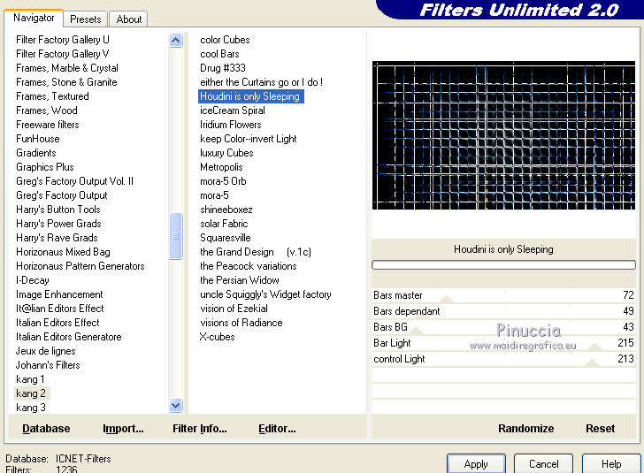 Effects>Plugins>Filters Unlimited 2.0 - Kang 2 - Houdini is only Sleeping.